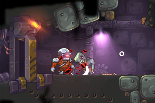 不死身っぱい主人公がゾンビが徘徊する坑道を探索するゲーム内容になっています。