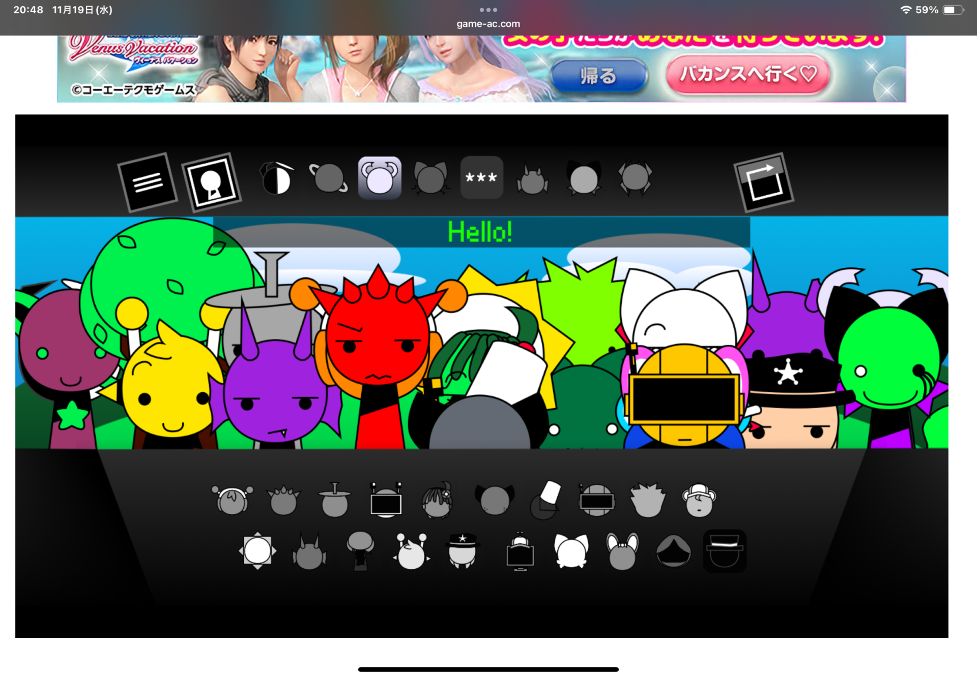 - 上部の三ツ星アイコンから「otherworlds」「hk」「oc」と入力すると、隠しキャラが出現。