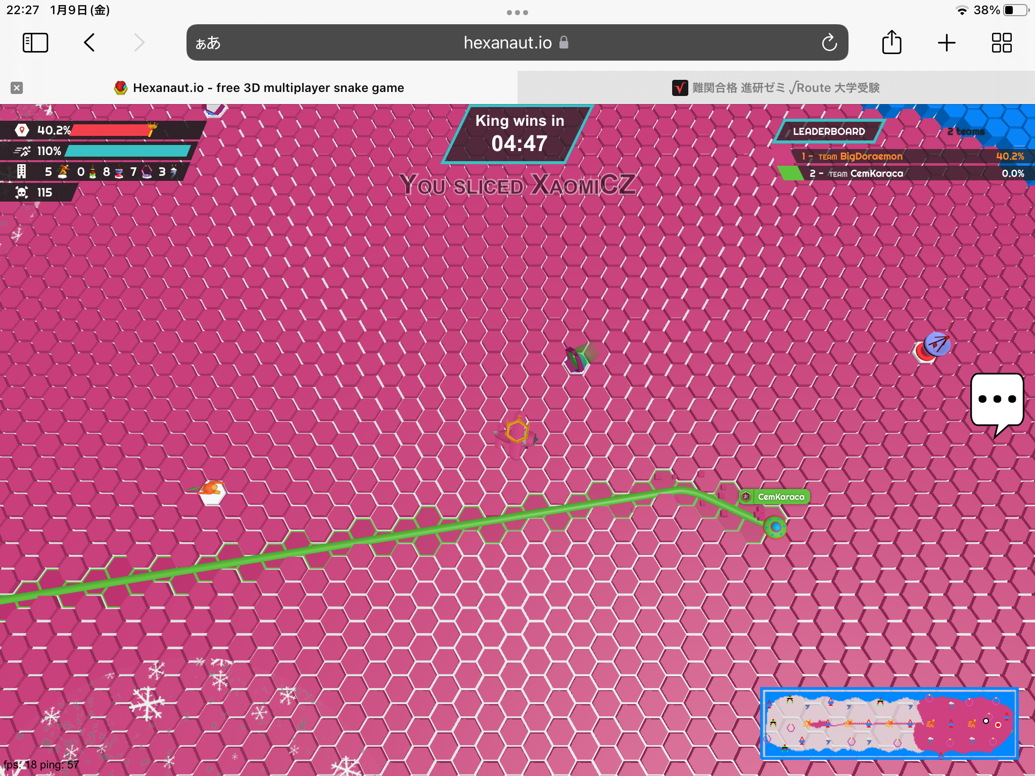 - 敵のヘビを倒すと、そのヘビが持っていた一定範囲内の領地が自分のものになります。