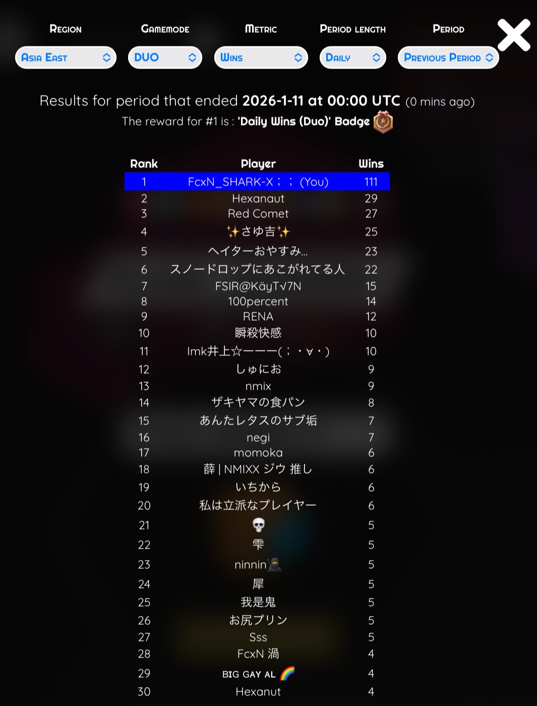 日間100勝チャレンジ(結果)