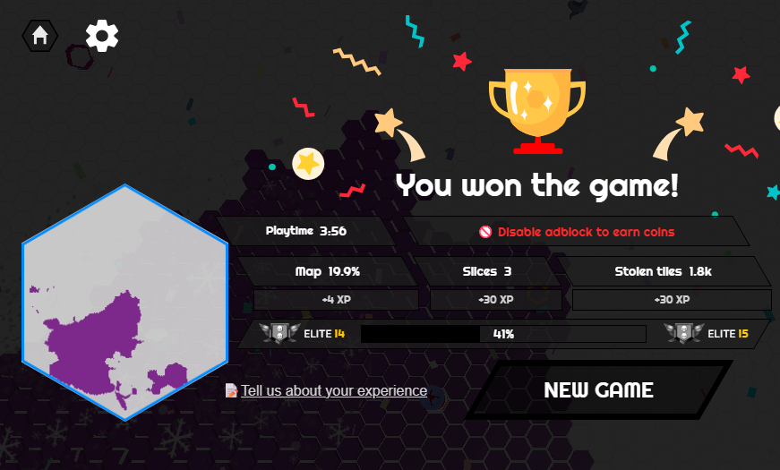 ヘビの胴体で囲った6角形(ヘキサ)の土地を自分の陣地にしながら領土を広げていくゲーム内容になっています。